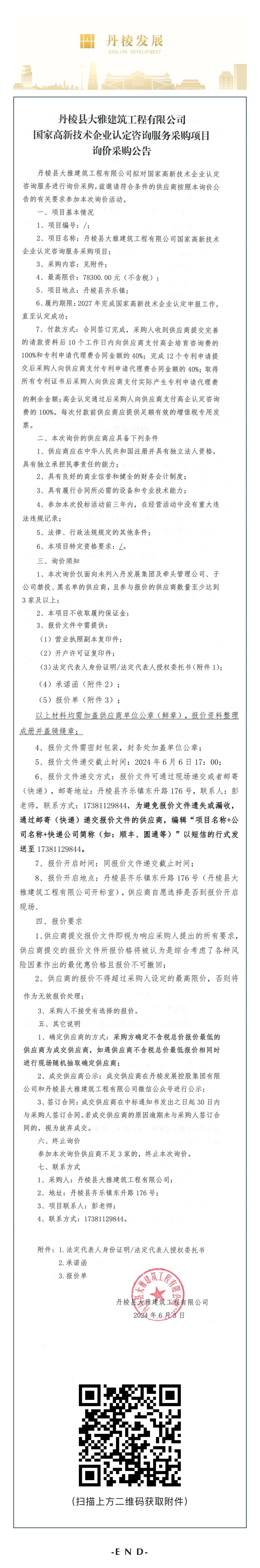 丹棱縣大雅建筑工程有限公司國(guó)家高新技術(shù)企業(yè)認(rèn)定咨詢服務(wù)采購(gòu)項(xiàng)目詢價(jià)采購(gòu)公告