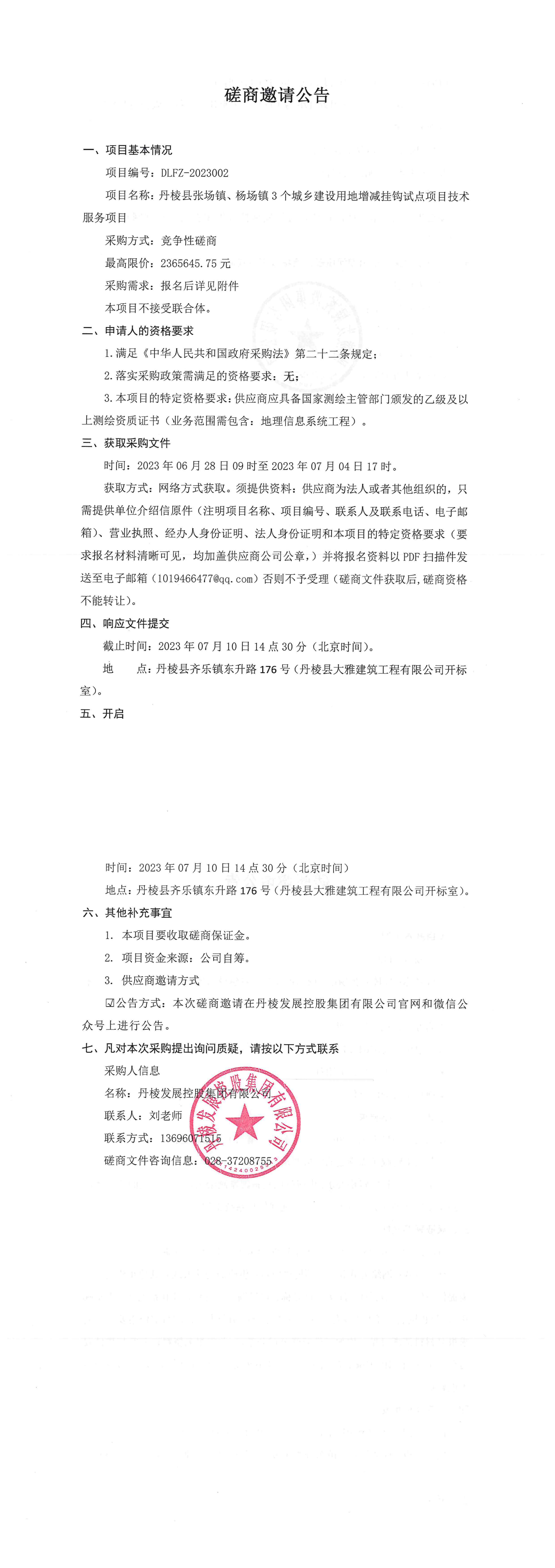 項(xiàng)目名稱:丹棱縣張場鎮(zhèn)、楊場鎮(zhèn)3個(gè)城鄉(xiāng)建設(shè)用地增減掛鉤試點(diǎn)項(xiàng)目技術(shù)服務(wù)項(xiàng)目磋商邀請公告