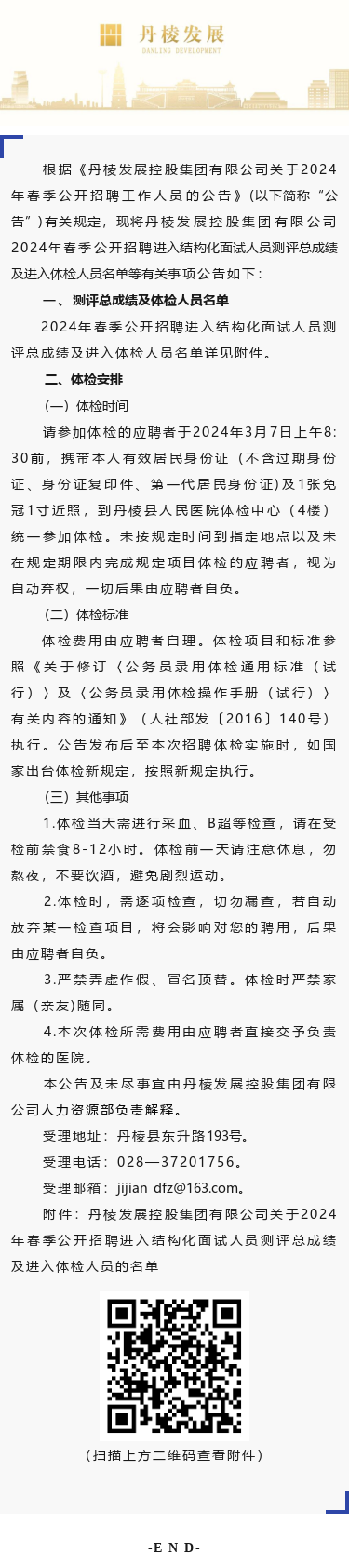 丹棱發(fā)展控股集團(tuán)有限公司關(guān)于2024年春季公開招聘進(jìn)入結(jié)構(gòu)化面試人員測評總成績及進(jìn)入體檢人員的公告