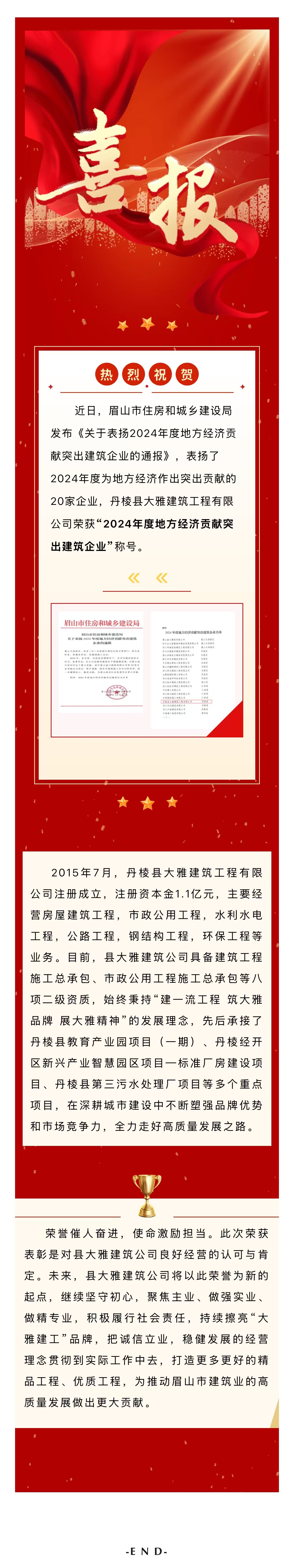 【縣大雅建筑公司】喜報!榮獲全市2024年度地方經(jīng)濟(jì)貢獻(xiàn)突出建筑企業(yè)