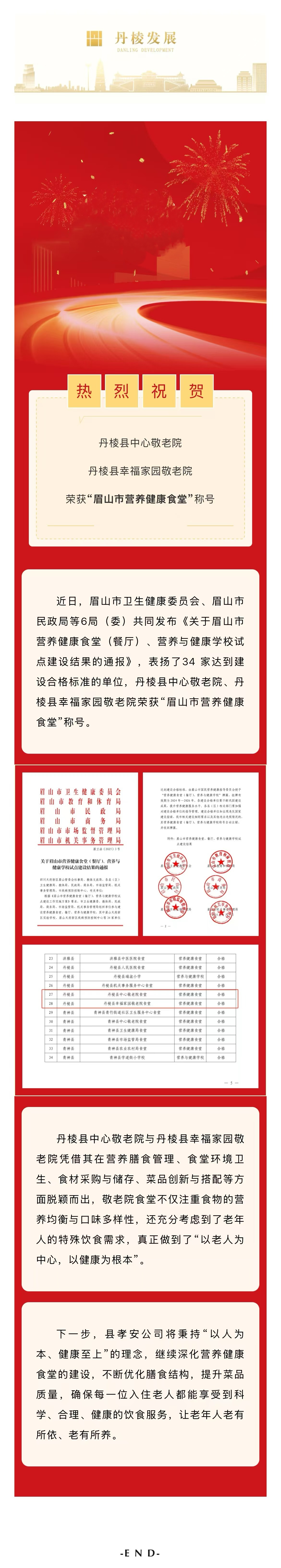 【縣孝安公司】喜報(bào)!丹棱縣中心敬老院、丹棱縣幸福家園敬老院榮獲“眉山市營養(yǎng)健康食堂”稱號