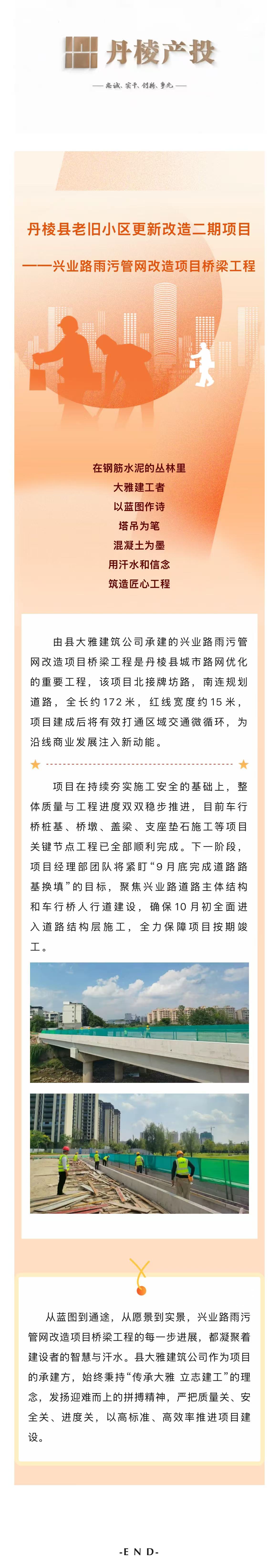 【縣大雅建筑公司】丹棱縣老舊小區(qū)更新改造二期項目—興業(yè)路雨污管網(wǎng)改造項目橋梁工程全力推進中