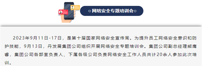 【網(wǎng)絡(luò)安全宣傳周】 丹發(fā)展集團公司開展網(wǎng)絡(luò)安全專題培訓會