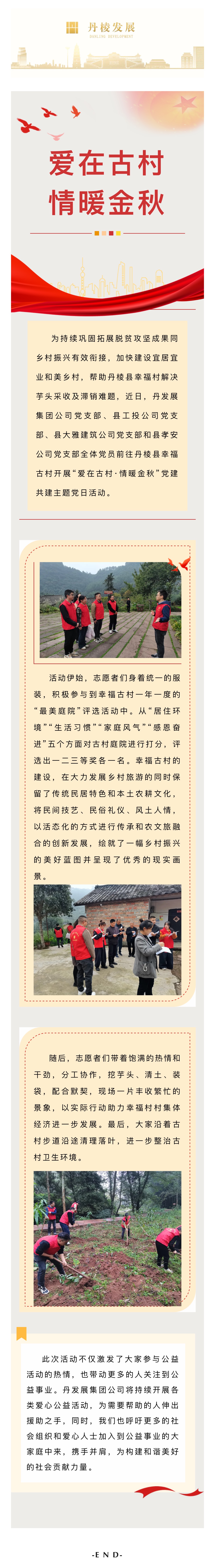 結對共建,共育共進|丹發(fā)展集團公司黨支部開展“愛在古村·情暖金秋 ”黨建共建主題黨日活動